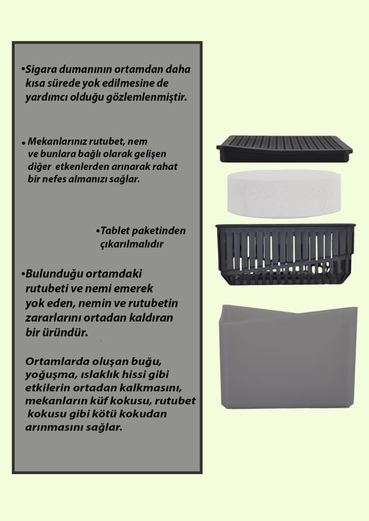 1 Kg - Gri Kare Aparat, Naturel - Nem Alıcı Aparat + Tablet - Rutubet Giderici
