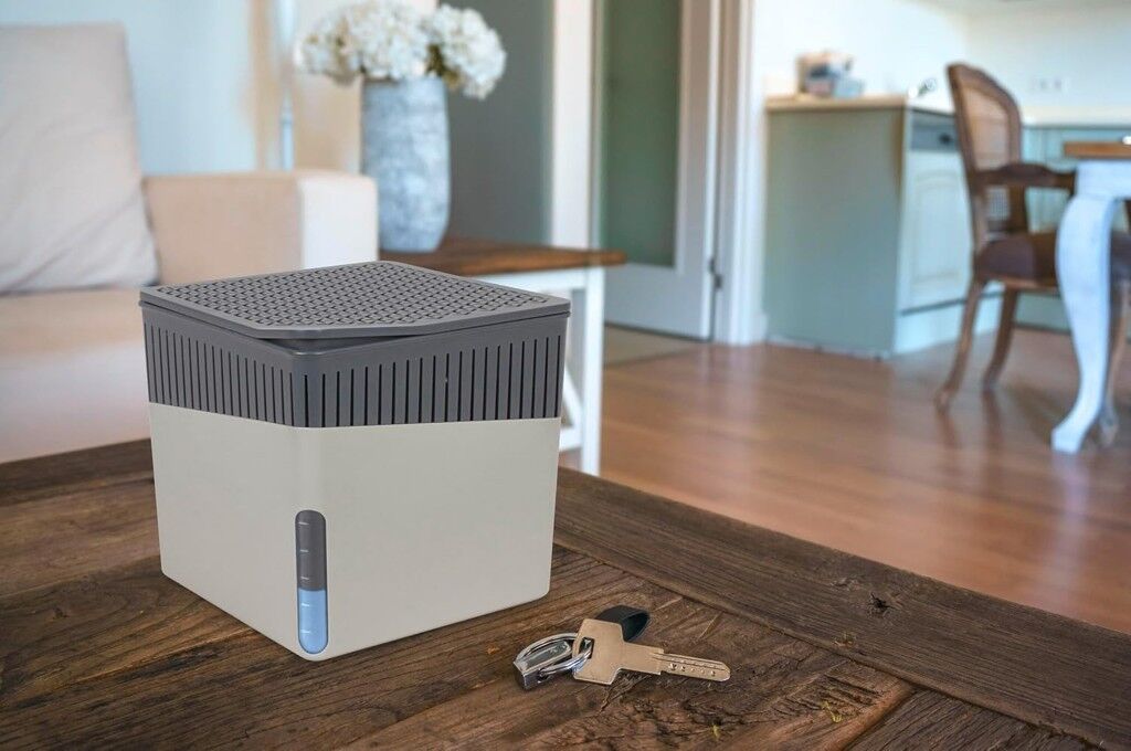 1 Kg – Gri Kare Nem Alıcı Aparat + Vanilya Kokulu Tablet | Rutubet Giderici Cihaz