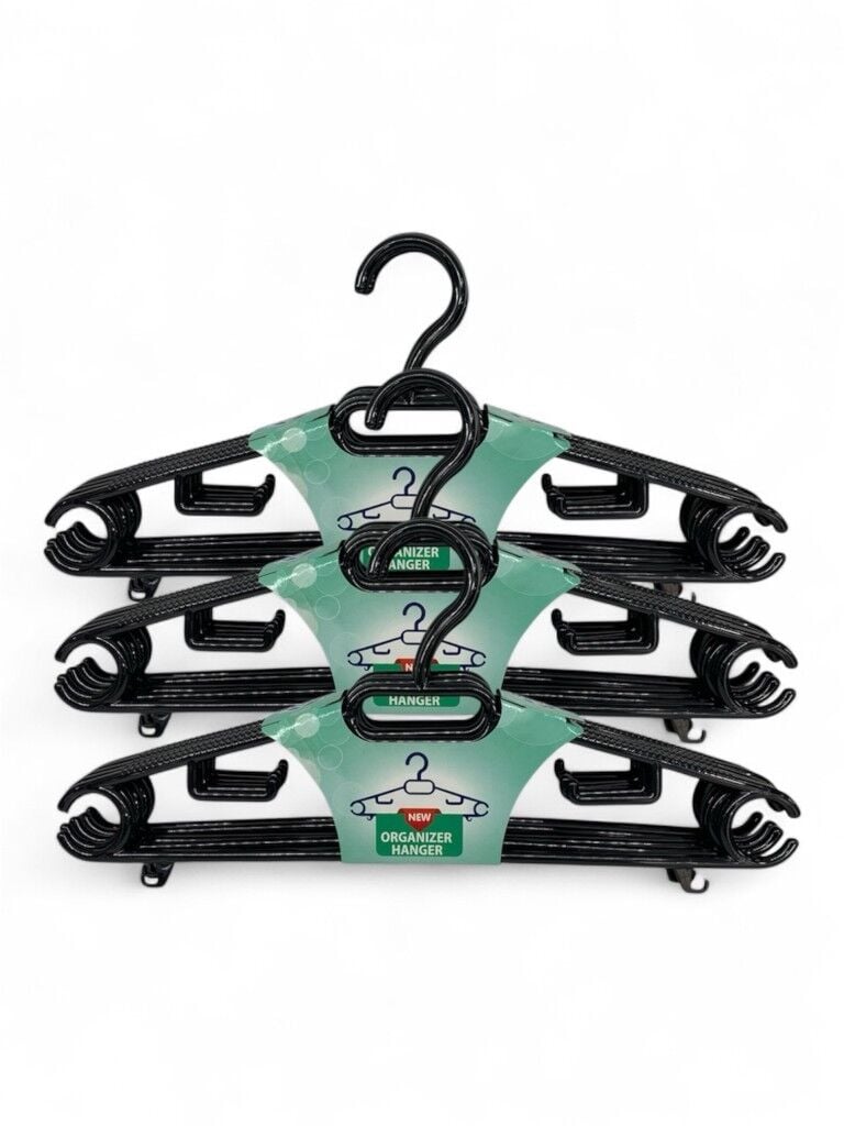 Şık siyah rengiyle gardırobunuzda düzeni ve estetiği bir arada sunan 15’li askılık seti, kıyafetlerinizi düzgünce asmanıza yardımcı olur.