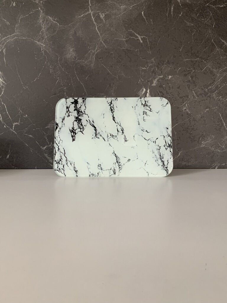 16x23cm - Beyaz Mermer, Cam Kesme Tahtası - Sunumluk
