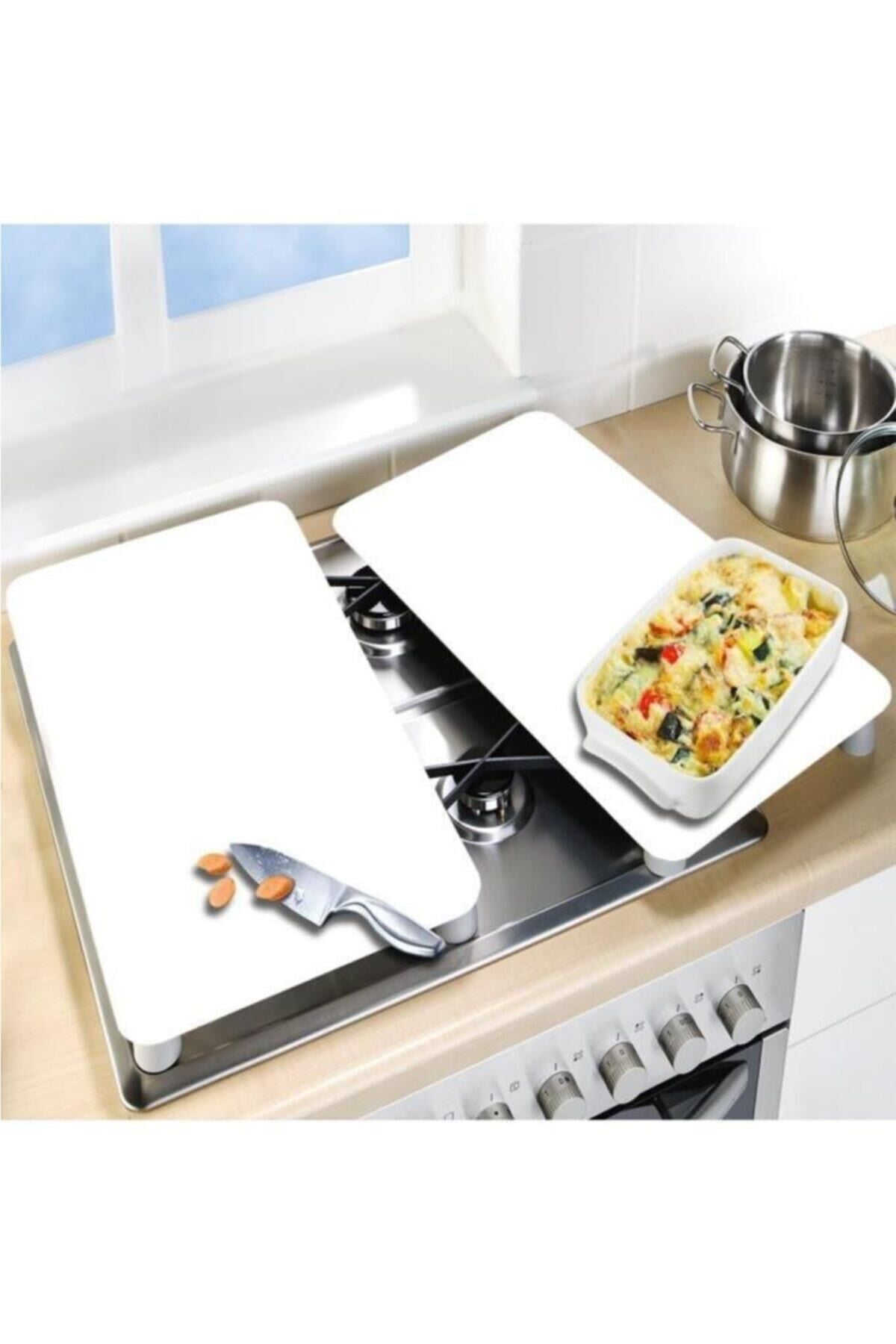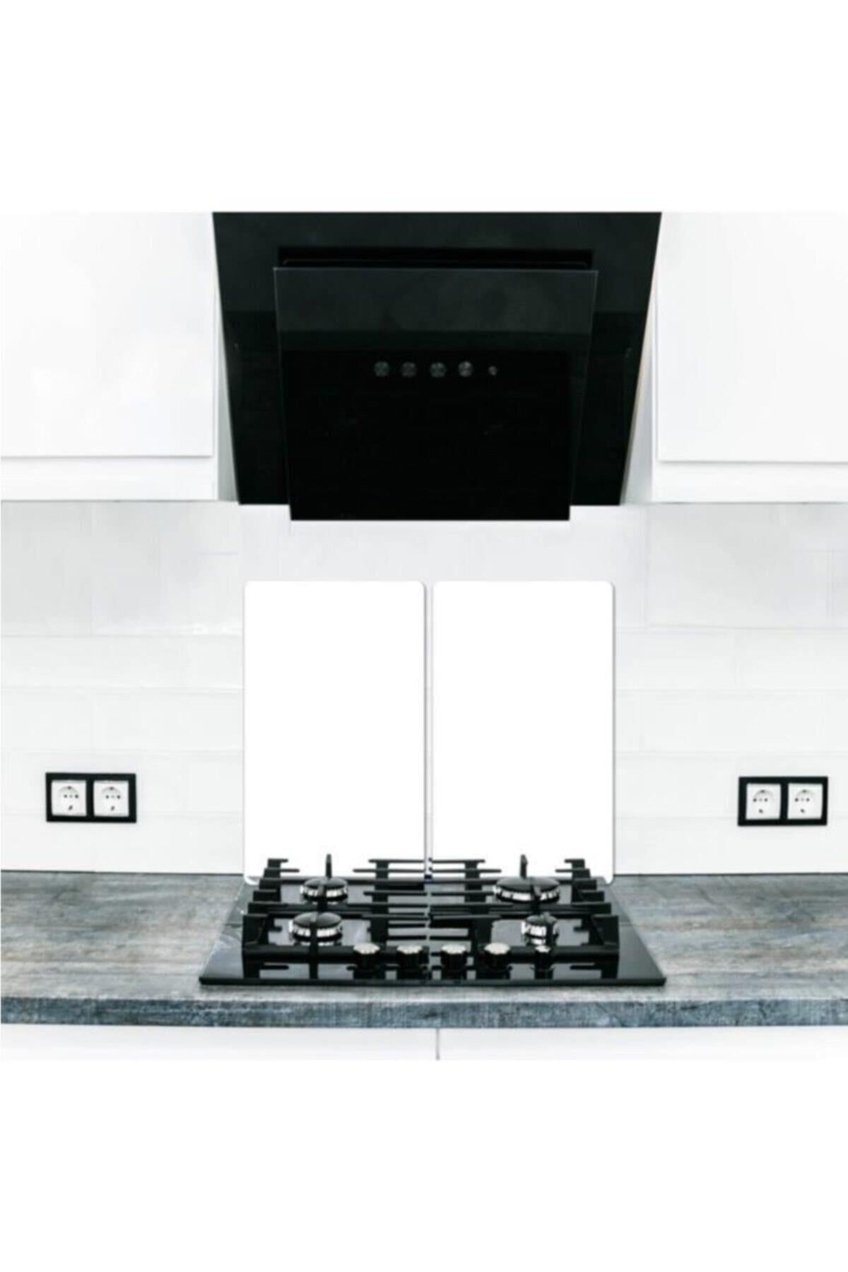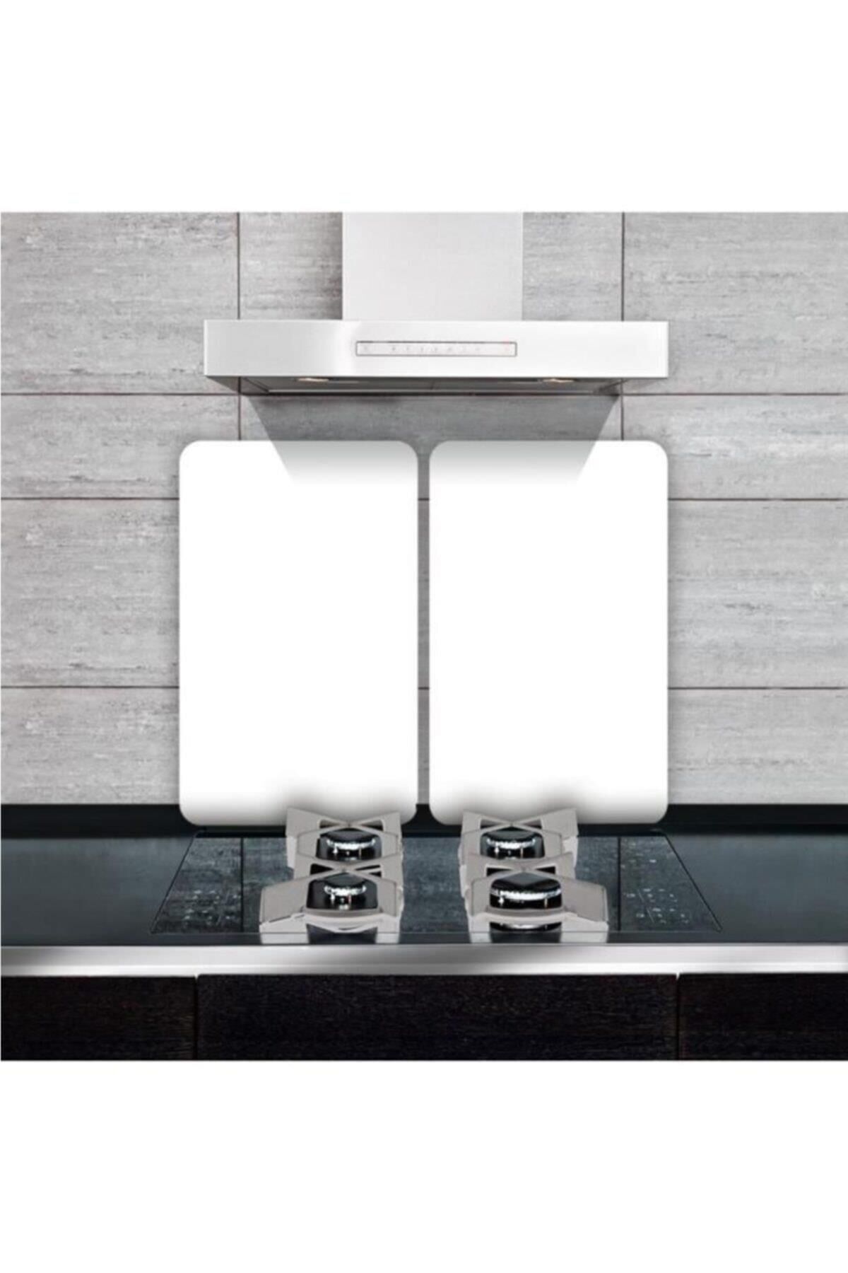 2'li 40x52cm Takım - Düz Beyaz Desenli - Ocak Koruyucu - Cam Kesme Tahtası