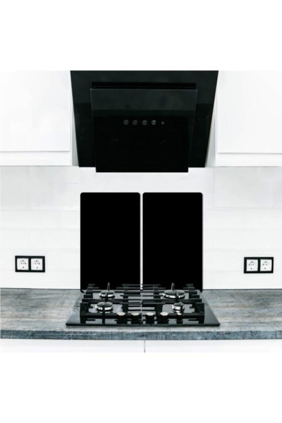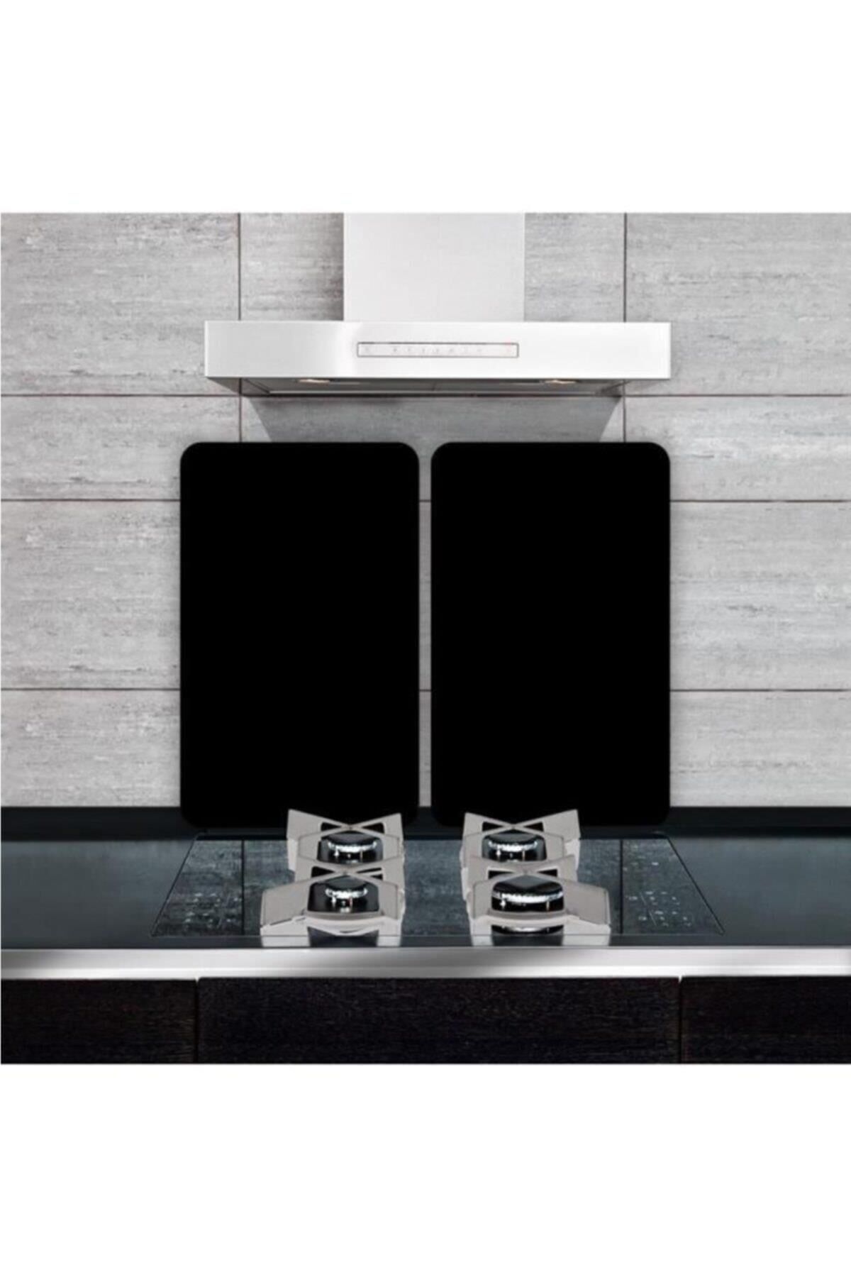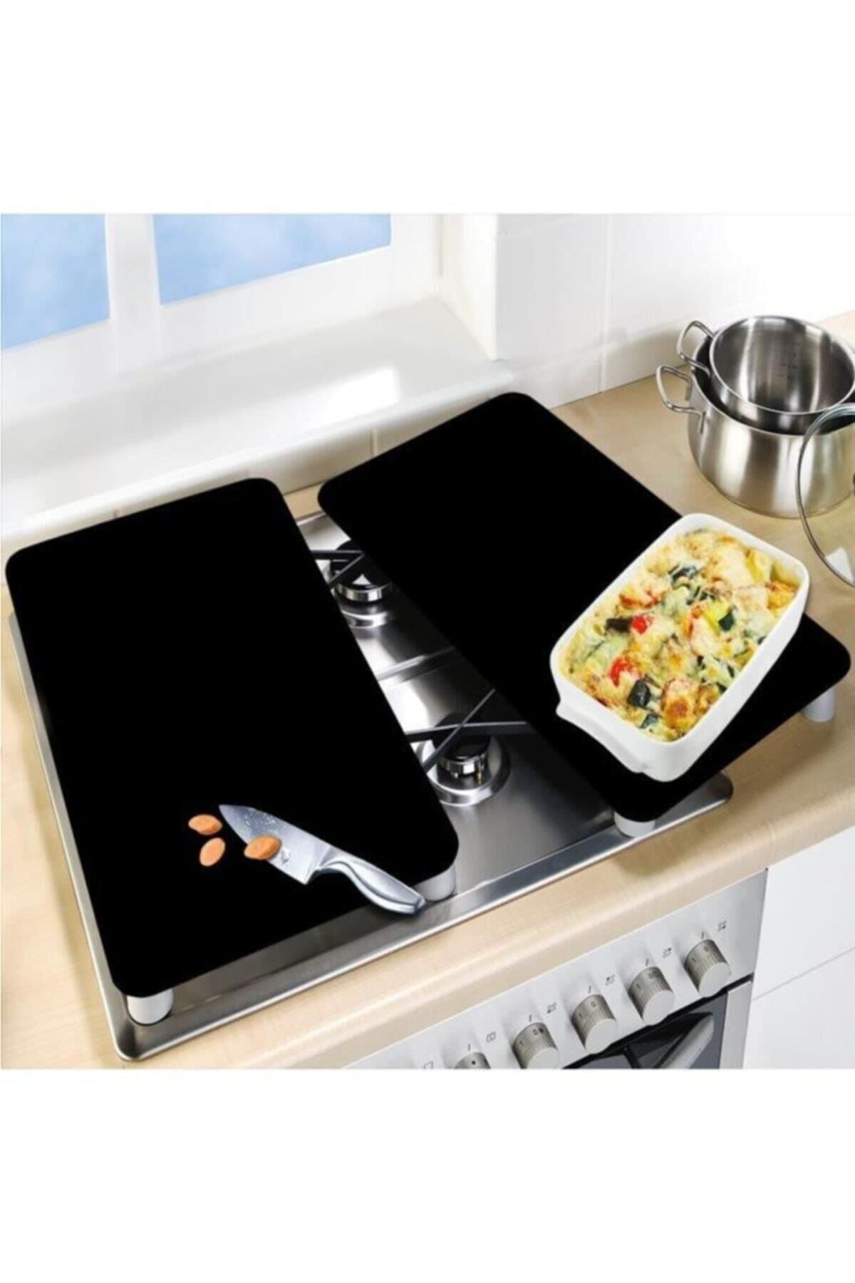 2'li 40x52cm Takım - Düz Siyah Desenli - Ocak Koruyucu - Cam Kesme Tahtası