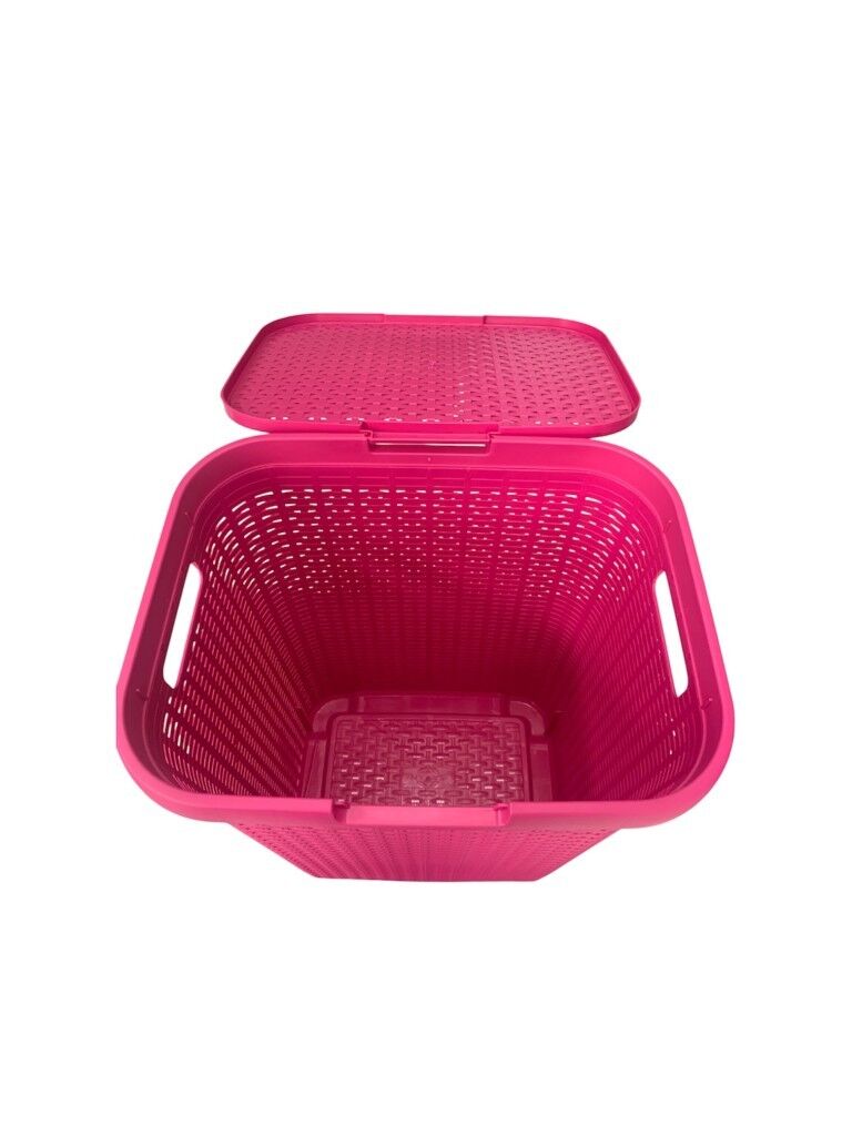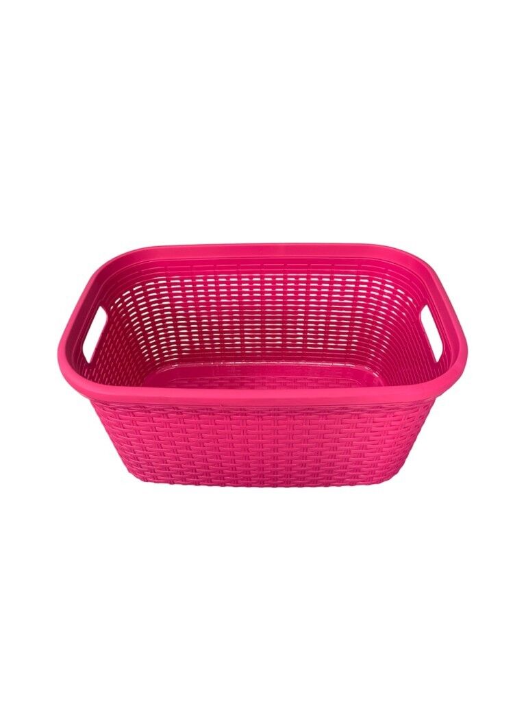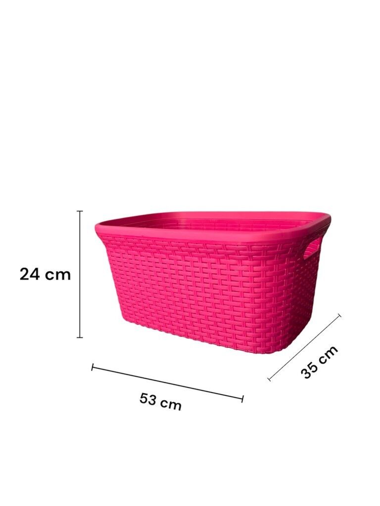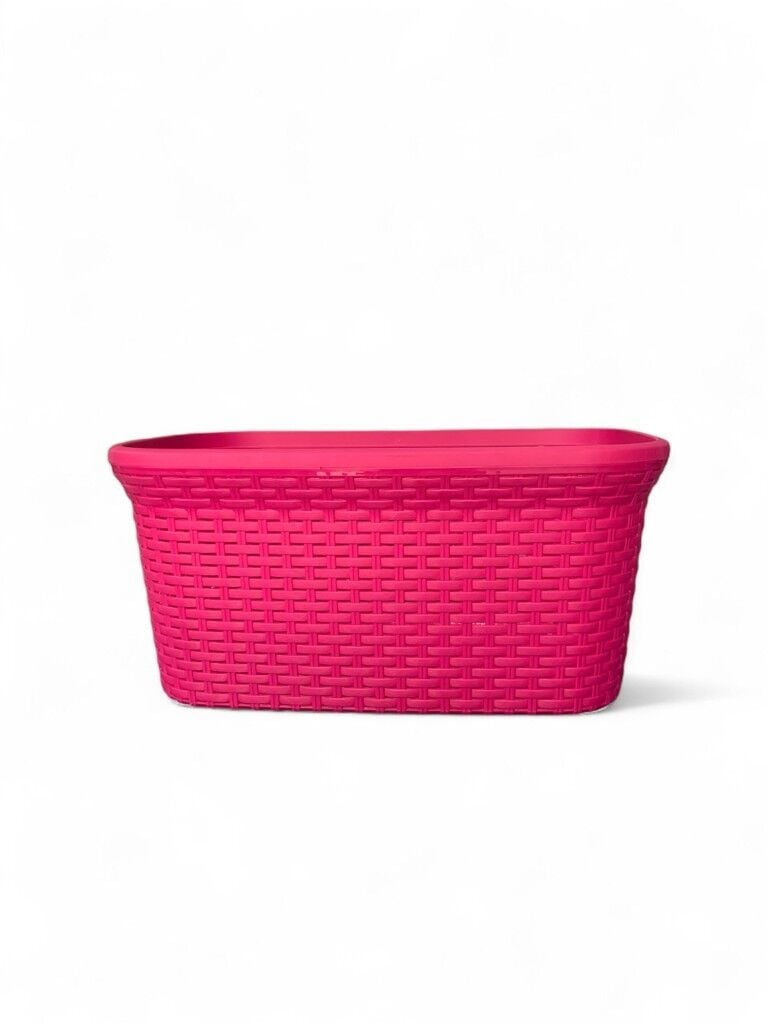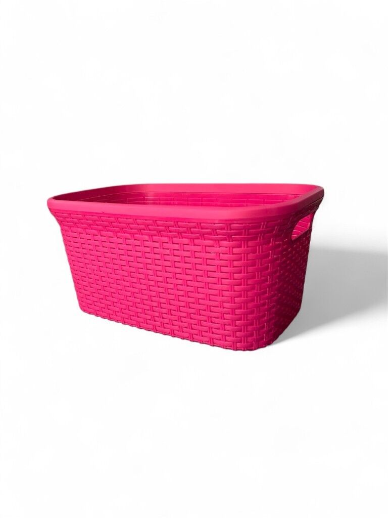 2'li Set Hasır Desenli Plastik Fusya Çamaşır Sepeti & Fusya Çamaşır Selesi
