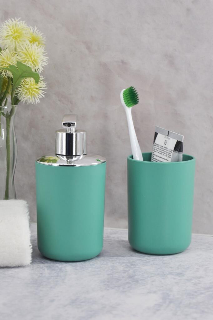 2'li Set Yeşil, Diş Fırçalık Ve Sıvı Sabunluk - Brasil Model