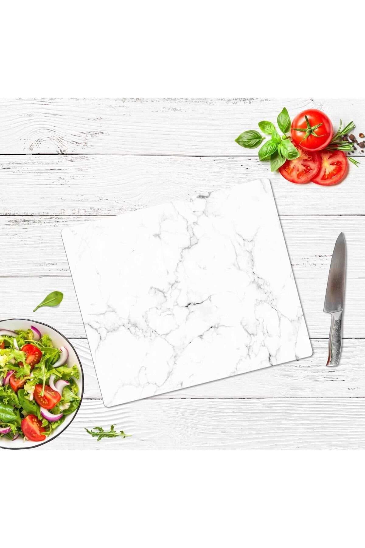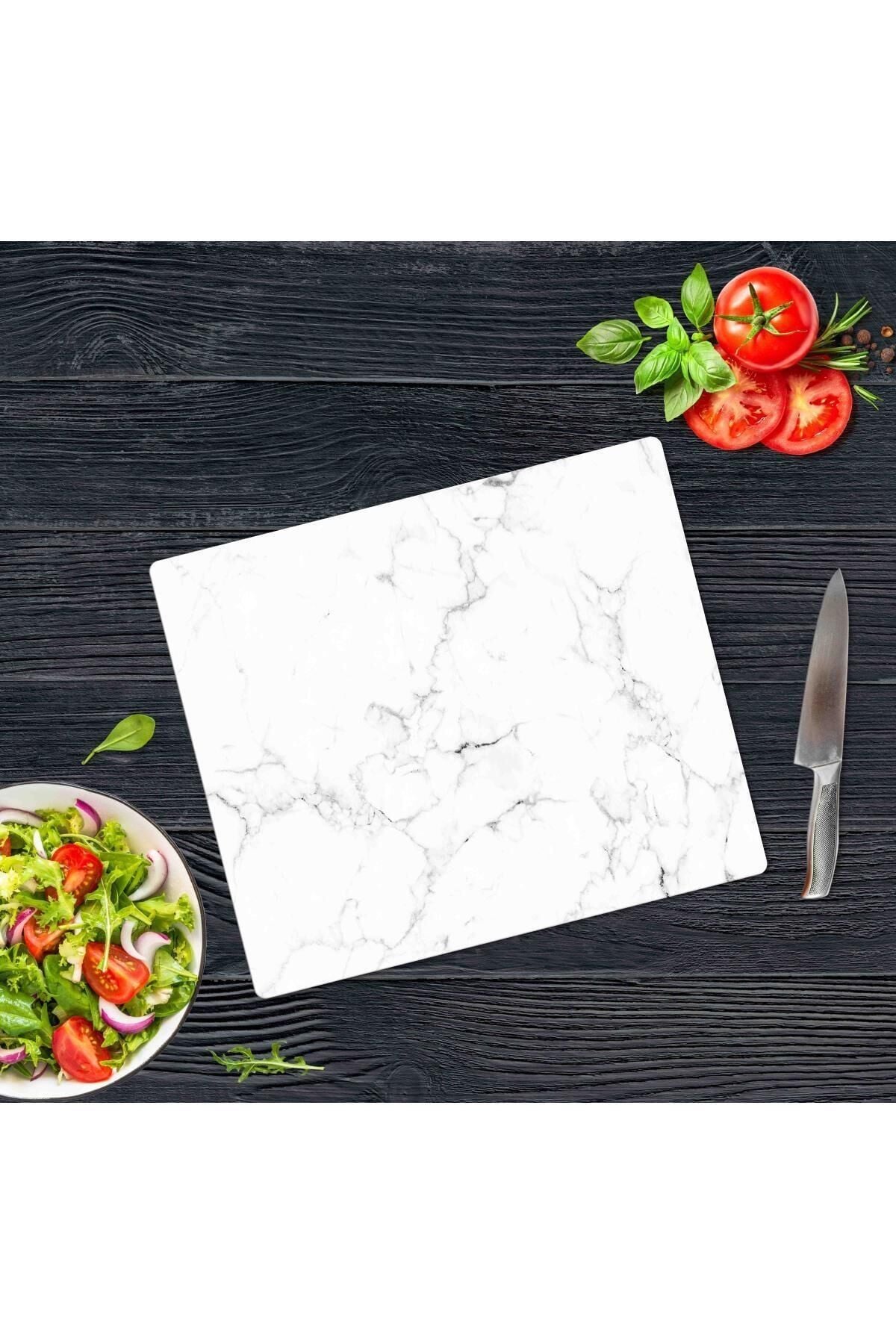 29x34cm - Siyah Beyaz Mermer - Cam Kesme Tahtası