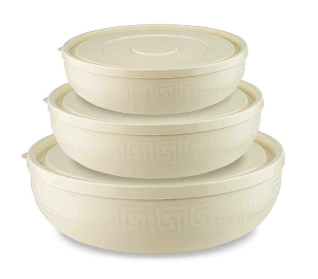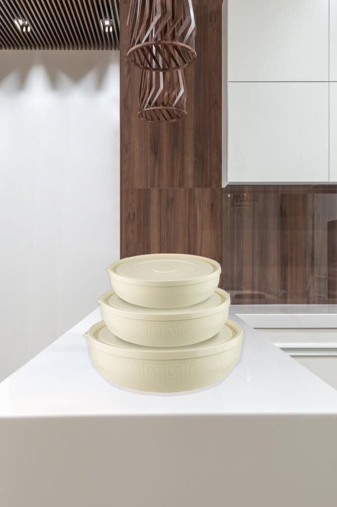 - Yuvarlak Sığ Kase Seti 3! lü gövde tasarımı, iç içe geçebilme özelliği bakından hem şık hem Mutfaklarda az yer kaplar. Ürün 1,5 Lt. 3 Lt. ve 5 Lt. kapasiteya sahip bir setten oluşur. Transparan ve opak tasarımları ile tercih edilebilirliği yüksektir.