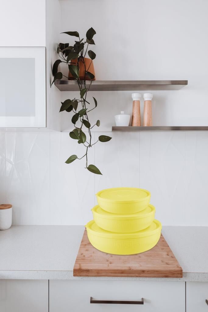 3'lü Sarı, Antik Yuvarlak Plastik Saklama Kabı Seti - (5 L, 2.7 L, 1.5 L)