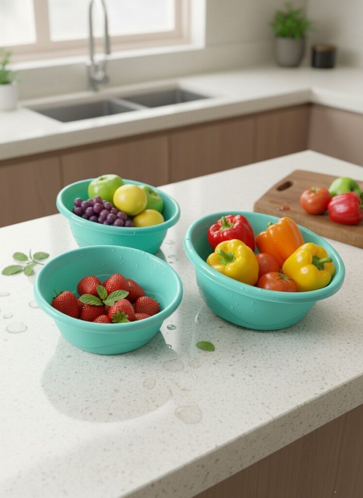 3'lü Yeşil, Badya Seti – Dayanıklı Plastik, Çok Amaçlı Kullanım, Mutfak & Temizlik İçin İdeal