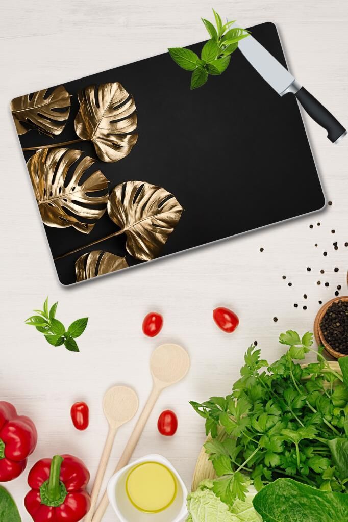 30x40 cm Cam Kesme Tahtası 4 Altın Yaprak