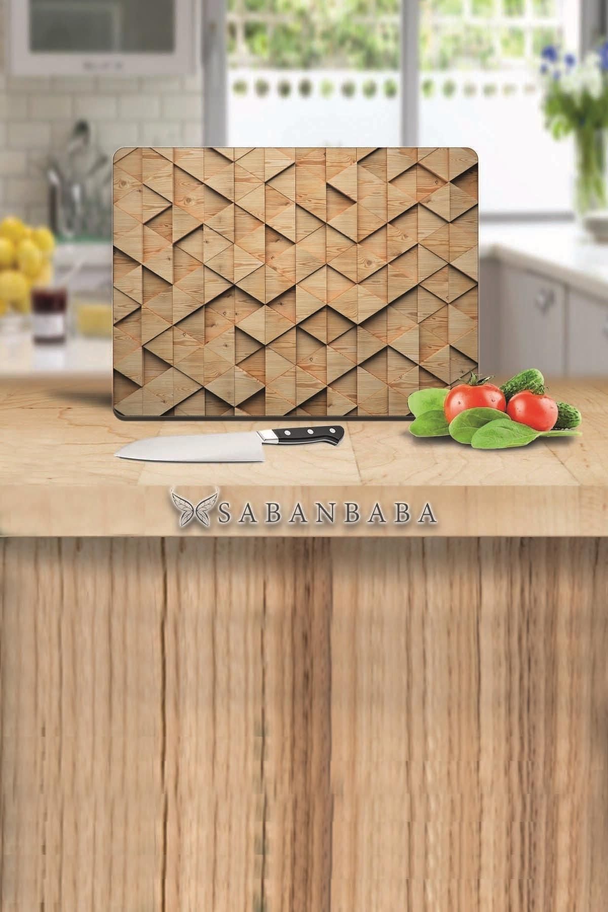 30x40 cm Cam Kesme Tahtası Ahşap Üçgen Görünümlü