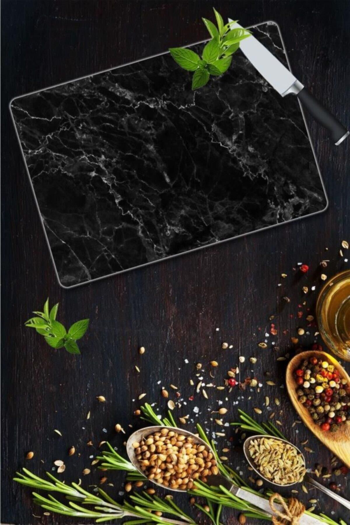 30x40cm - Siyah Mermer Desenli - Cam Kesme Tahtası
