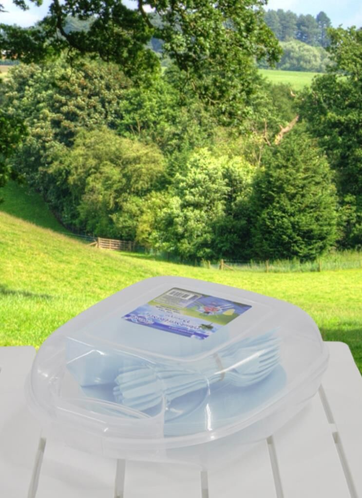 6 kişilik 32 parça piknik malzemesini tek bir taşıma kabı içinde saklar.