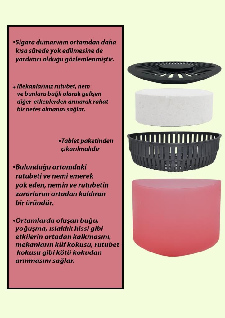 - • Paket İçeriği : Kırmızı Meyveler Kokulu 4 Adet Nem alıcı Aparat + 4 Adet 500 Gr. Tablet
