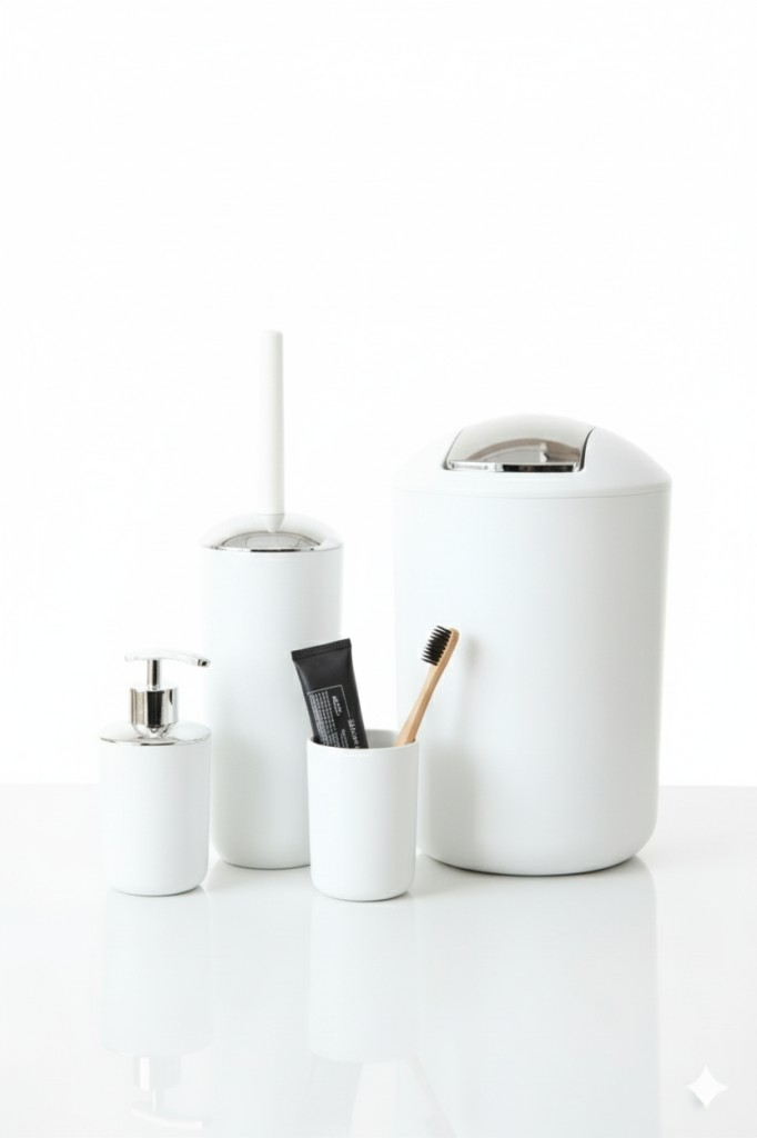 4'lü Beyaz, Banyo Aksesuar Seti, Çöp Kovası Seti - Brazil Model