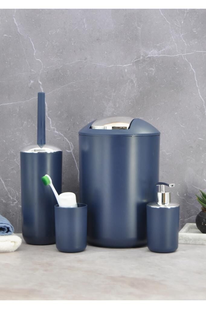 4'lü Lacivert, Banyo Aksesuar Seti, Çöp Kovası Seti - Brazil Model