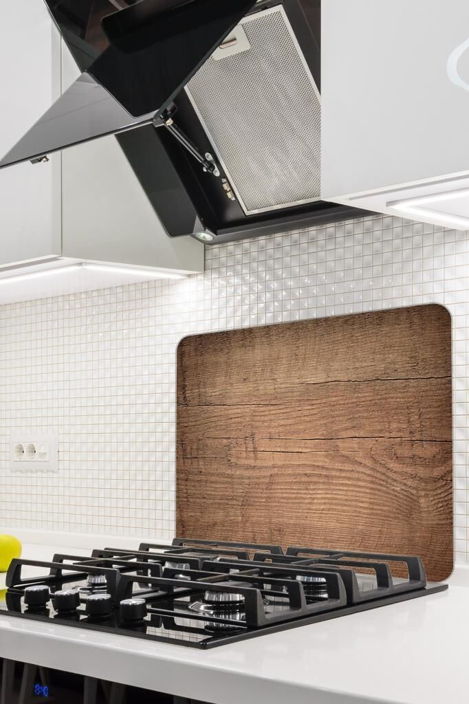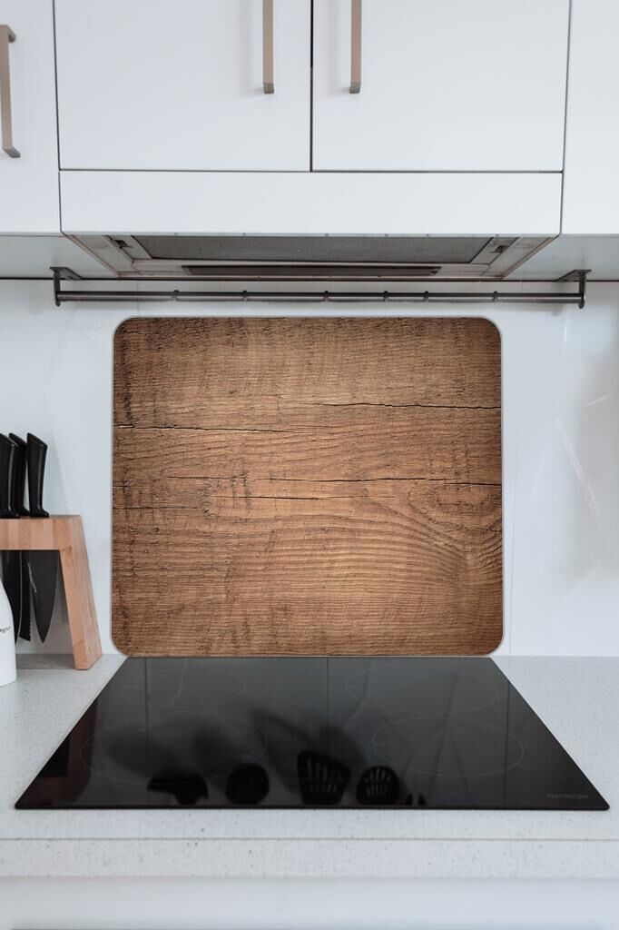 50X56 cm Cam Ocak Koruyucu Koyu Ahşap Desenli