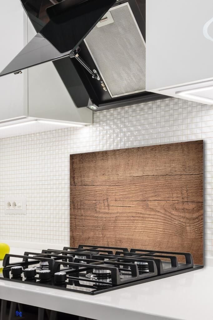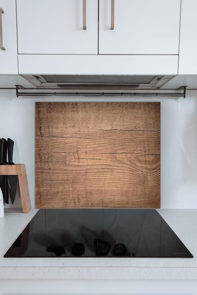 60x70 cm Koyu Ahşap Desenli Cam Ocak Koruyucu