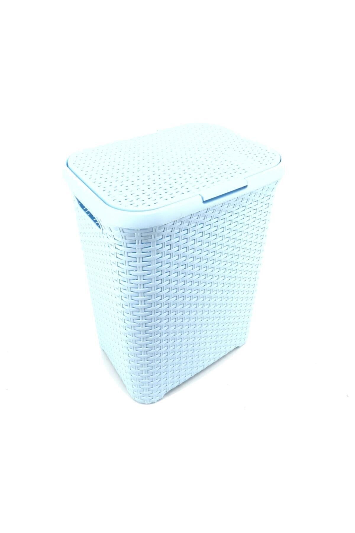 Açık Mavi Hasır Desenli Plastik Çamaşır Sepeti