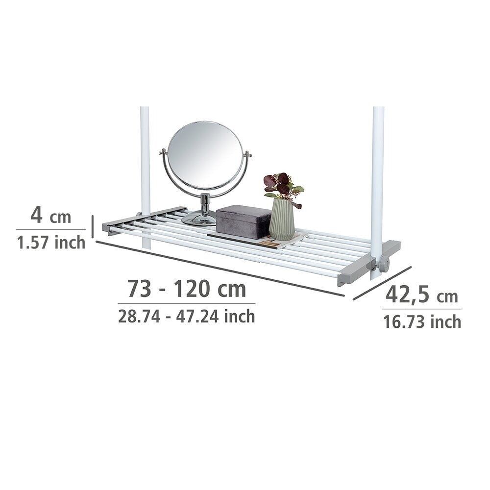 WENKO'nun değişken Herkules teleskopik sistemiyle, giyinme odası hayaliniz neredeyse her odada gerçeğe dönüşebilir. Yaratıcı Herkules rafı, pratik bir aksesuardır ve Herkules Mix & Match serisinin bir parçası olarak idealdir; kendi giyinme odanızı genişletmenize veya yeniden tasarlamanıza olanak tanır. Giysiler, aksesuarlar, havlular, sepetler ve dekoratif eşyalar bu yüksek kaliteli rafta net ve kolay erişilebilir bir yer bulur. Raf, 73 cm'den 120 cm'ye kadar uzayabilir ve montaj braketleriyle birlikte gelir. Modern görünümünün yanı sıra, toz boya kaplı metal ve gri plastik elemanların birleşimiyle raf mükemmel bir stabilite sunar ve son derece dayanıklıdır. Yükseklik ayarlanabilirliği sayesinde, tüm Herkules teleskopik sistemi çok çeşitli oda boyutlarına uyarlanabilir.