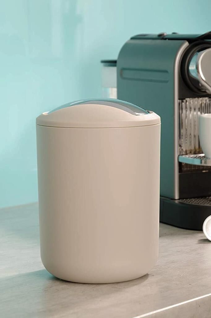 Sallanan kapaklı kova mutfakta da şık bir yardımcıdır. Tezgah üzerinde kahve poşetlerini, kahve kapsüllerini, çay poşetlerini veya diğer küçük çöpleri şık bir şekilde saklamak için dekoratif olarak hazırdır. Mini kova yemek masasında pratik bir masa çöp kutusu görevi görür ve böylece kahvaltı sırasında şık bir düzen sağlar.