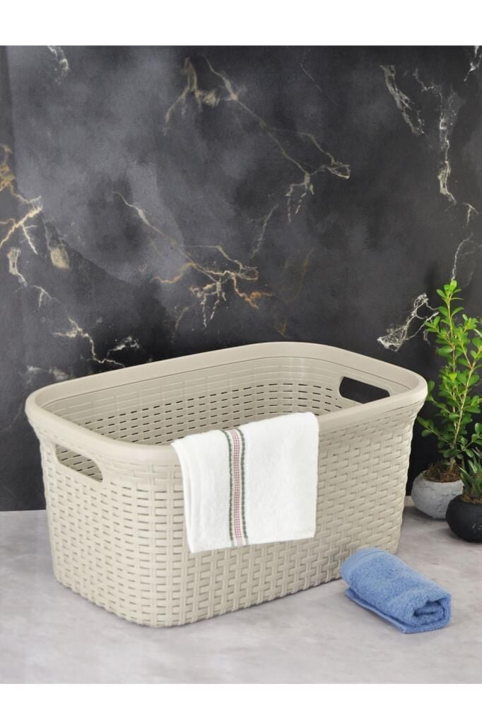 Bej, Hasır Desenli Plastik Çamaşır Selesi - 25x35x53cm