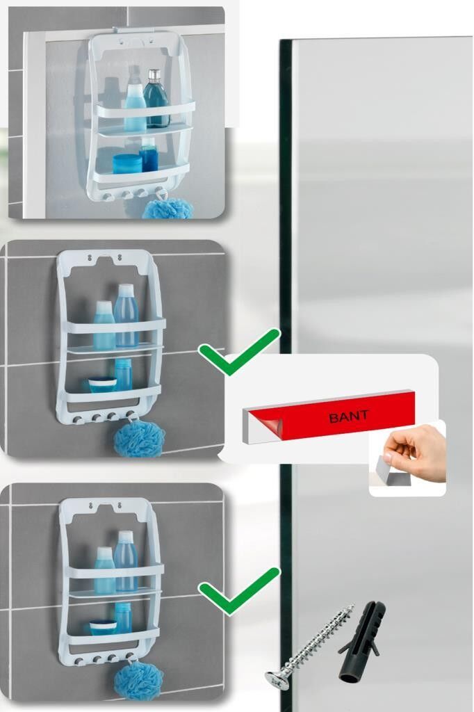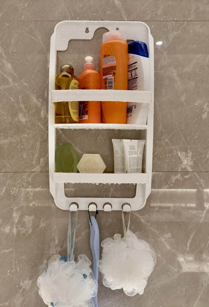 Beyaz, 3 Katlı Banyo Duş Rafı - Askılıklı Banyo Organizeri - Delmeden Montaj