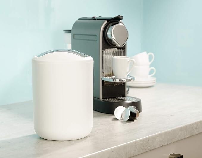 Sallanan kapaklı kova mutfakta da şık bir yardımcıdır. Tezgah üzerinde kahve poşetlerini, kahve kapsüllerini, çay poşetlerini veya diğer küçük çöpleri şık bir şekilde saklamak için dekoratif olarak hazırdır. Mini kova yemek masasında pratik bir masa çöp kutusu görevi görür ve böylece kahvaltı sırasında şık bir düzen sağlar.