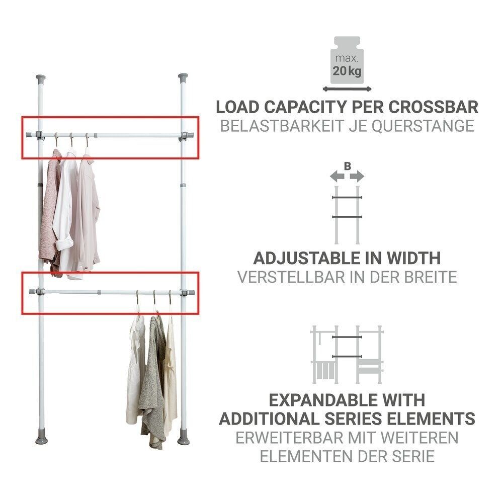 WENKO'nun değişken Herkules teleskopik sistemiyle, giyinme odası hayaliniz neredeyse her odada gerçeğe dönüşebilir. İkili set halinde satılan Herkules elbise askısı, pratik bir aksesuardır ve Herkules Mix & Match serisinin bir parçası olarak idealdir; kendi giyinme odanızı genişletmenize veya yeniden tasarlamanıza olanak tanır. Yatay raylar 75 ila 120 cm arasında uzanır. Yükseklik ayarlanabilirliği sayesinde, tüm Herkules teleskopik sistemi çok çeşitli oda boyutlarına uyarlanabilir. İki teleskopik ray, montaj braketleriyle birlikte gelir ve toz boya kaplı metal yapıları sayesinde olağanüstü stabilite ve dayanıklı kalite sunar.