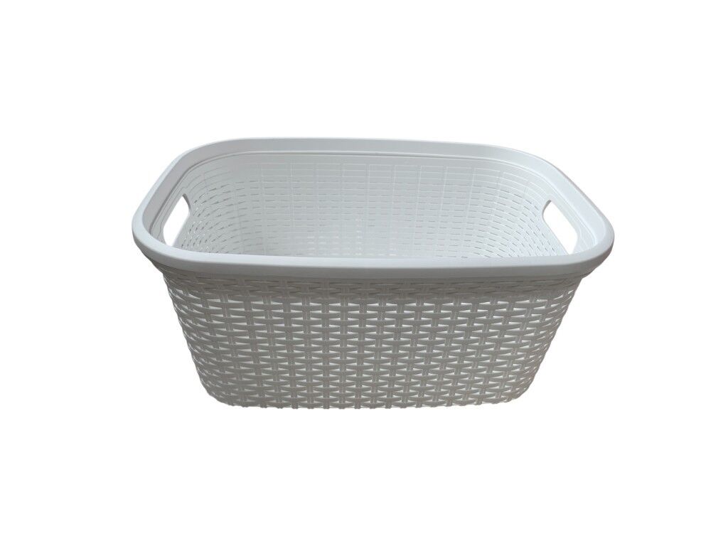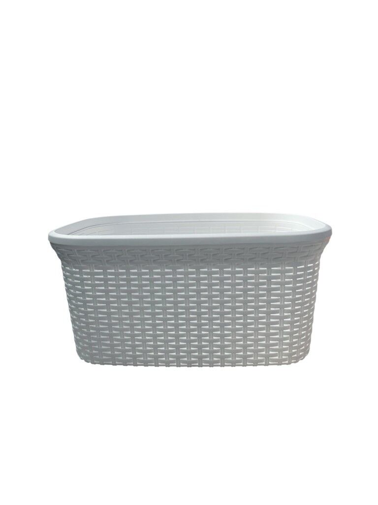 Beyaz, Hasır Desenli Plastik Çamaşır Selesi - 25x35x53cm