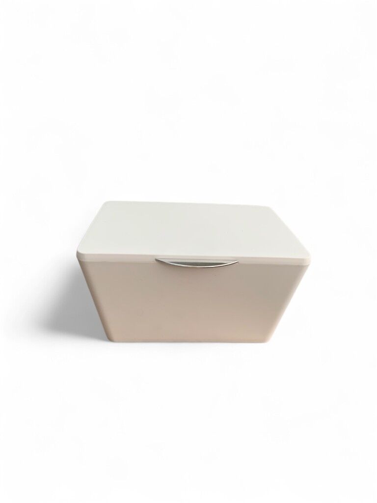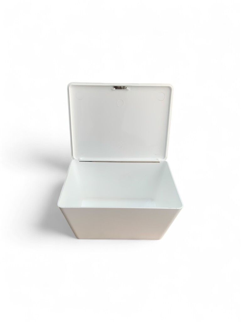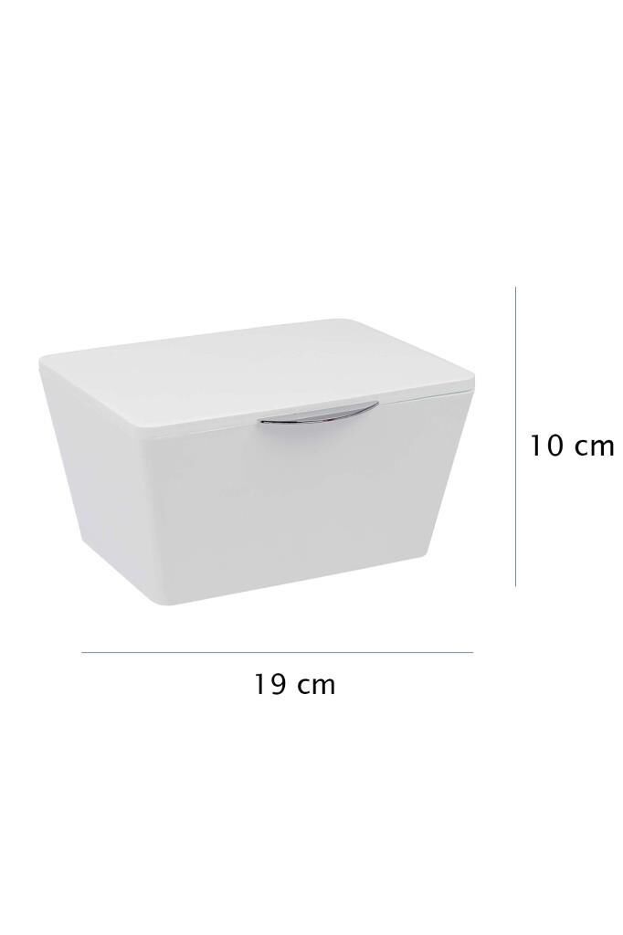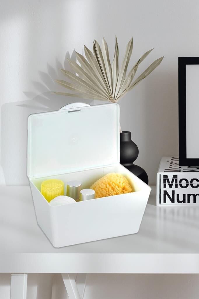 Şık göz alıcı: Mat bir yüzeye sahip beyaz plastikten yapılmış pratik sepet banyoda ve evde aksesuarları saklamak için idealdir, kapak neme, toza karşı koruma sağlar.