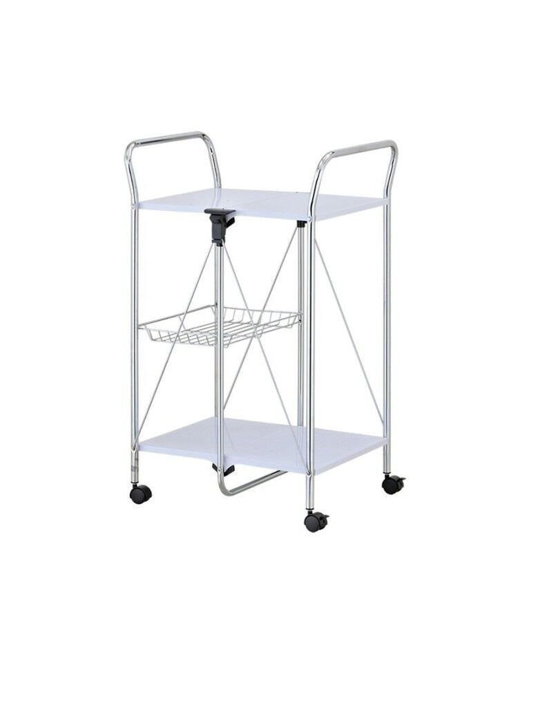 Beyaz, Katlanabilir Tekerlekli Metal Raflı Servis Arabası