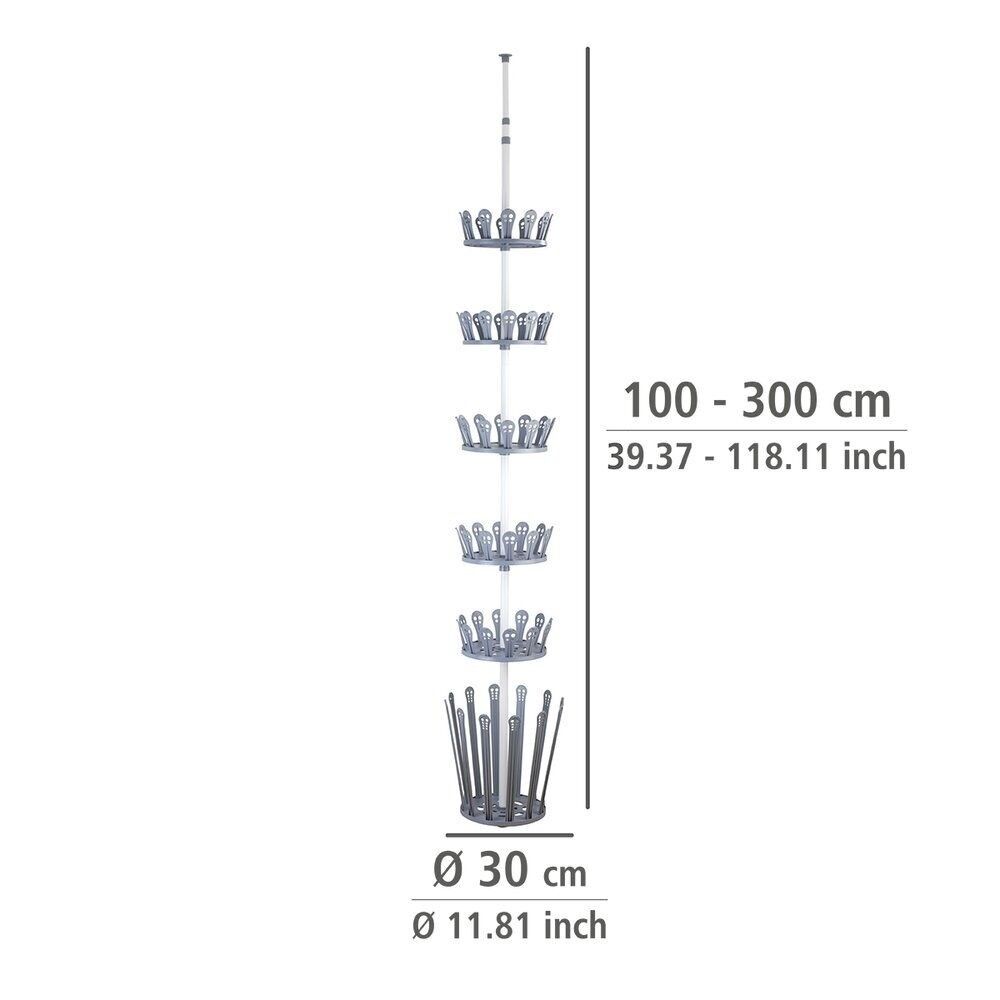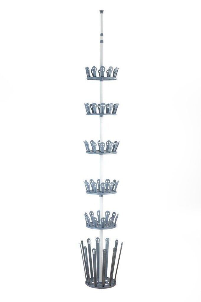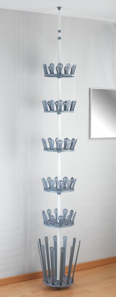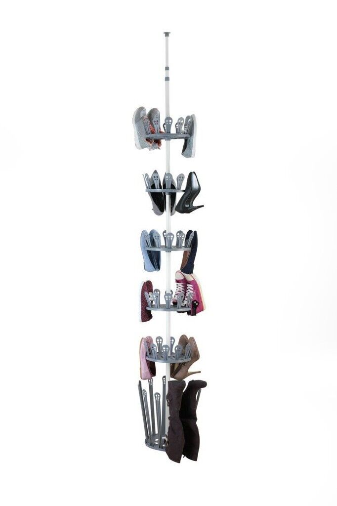 Bu pratik teleskopik ayakkabı ve bot rafı, koridorunuza, merdiven boşluğunuza veya giyinme odanıza düzen getirir. Ayakkabılarınızı saklamak istediğiniz her yerde, bu sağlam, ayarlanabilir ayakkabı rafı, kompakt bir alanda geniş depolama alanı sunar ve alet gerektirmeden monte edilebilir. Kullanımı kolay yükseklik ayarlama mekanizması, rafı tavan ve zemin arasına güvenli bir şekilde sabitler. Döner raflı altı kullanışlı halka, tüm ayakkabı ve botlarınız için düzenli bir saklama alanı sağlar. En alt halka altı çift bot, üstteki beş halka ise altı çift ayakkabı olmak üzere toplam 30 çift ayakkabı alabilir. Toz boyalı metal çubuklarıyla bu sağlam ayakkabı ve bot rafı, herhangi bir rafa veya dolaba düzen getirir. Tüm botlarınız ve ayakkabılarınız düzenli bir şekilde organize edilir, böylece sıkıcı aramalara gerek kalmaz.