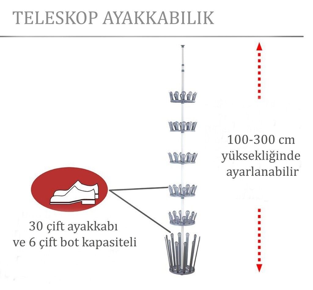 - Yuvarlak, yüksekliği ayarlanabilir teleskopik ayakkabı rafı