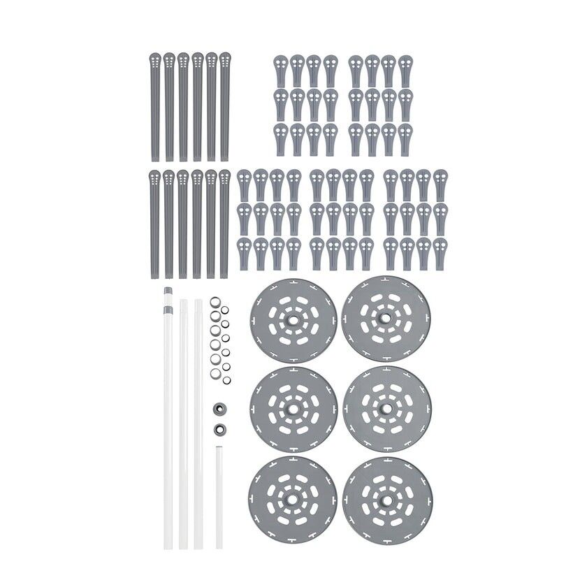 - Beyaz toz boyalı metal, gri plastik braketlerle.