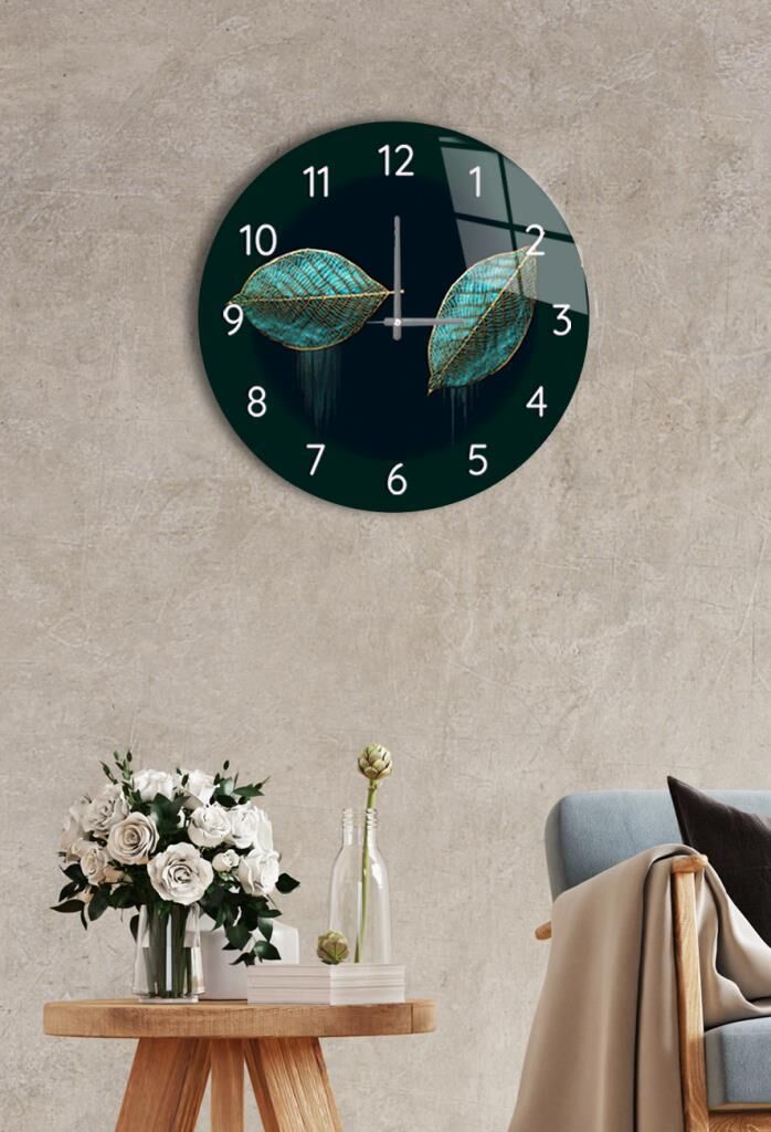 Çap 27cm - İki Yaprak - Dekoratif Cam Duvar Saati