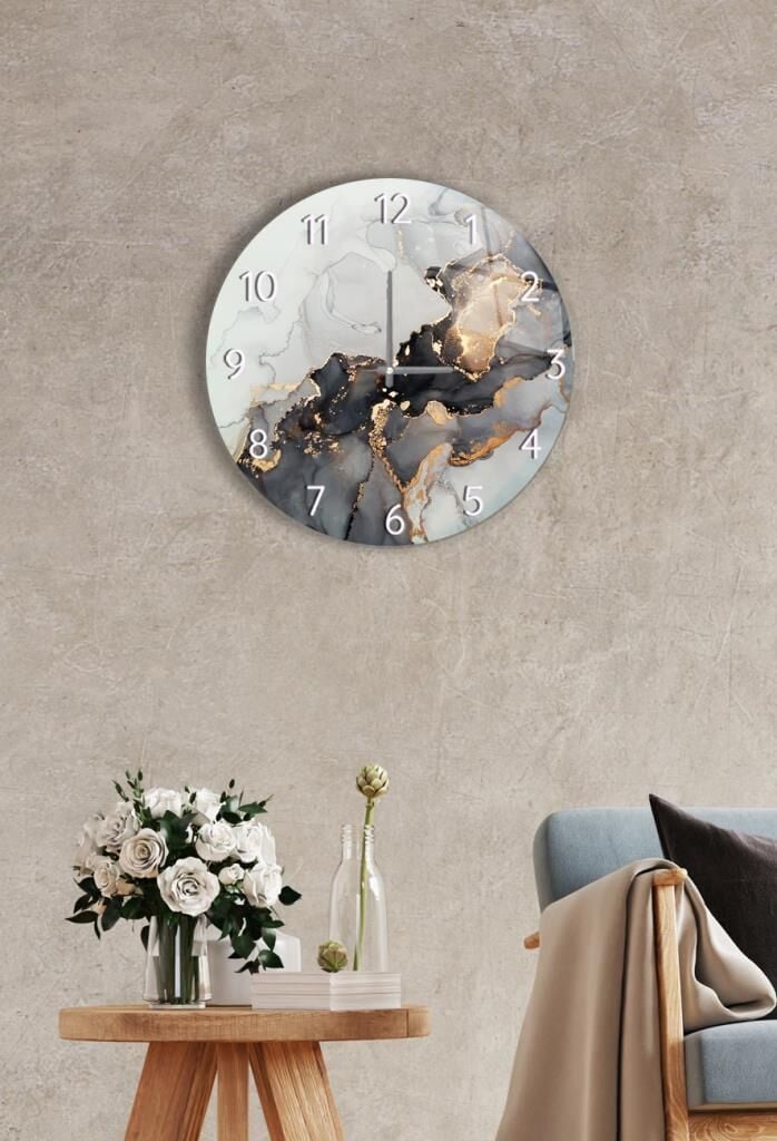 Çap 27cm - Siyah Yaldızlı - Dekoratif Cam Duvar Saati