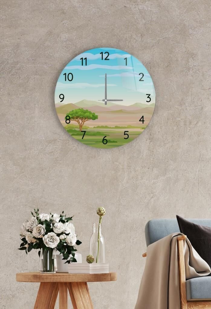 Çap 37cm - Afrika Savanı - Dekoratif Cam Duvar Saati