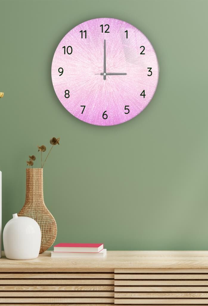 Çap 37cm - Dijital Pembe - Dekoratif Cam Duvar Saati