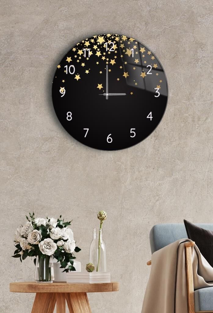 Çap 37cm - Düşen Yıldızlar - Dekoratif Cam Duvar Saati