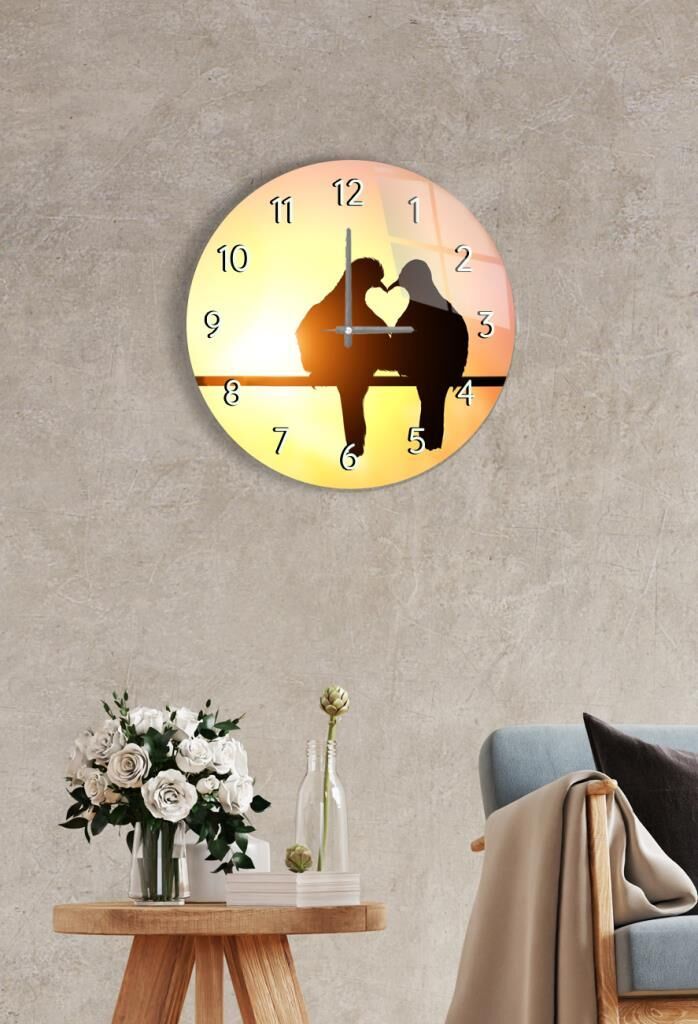 Çap 37cm - Kalp Silueti - Dekoratif Cam Duvar Saati