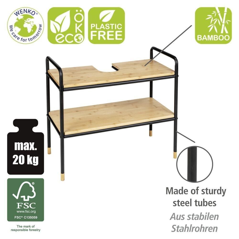 - FSC® sertifikalı bambudan yapılmış 2 raflı, toz boyalı metalden yapılmış çerçeve, siyah