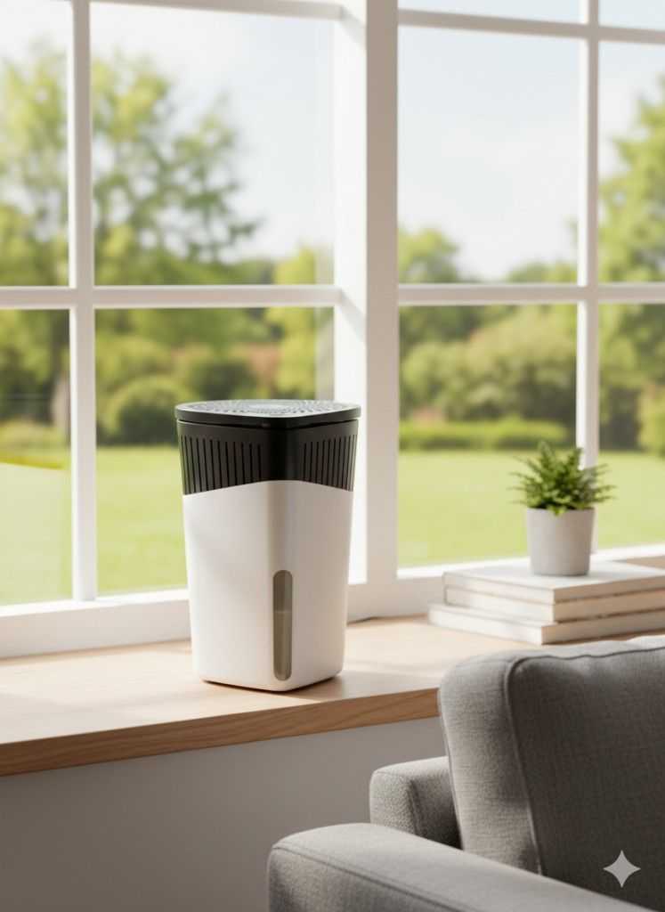 İçindeki özel granül veya tablet, havadaki nemi çekerek alt haznede suya dönüştürür. Böylece ortamın nem dengesini korur.