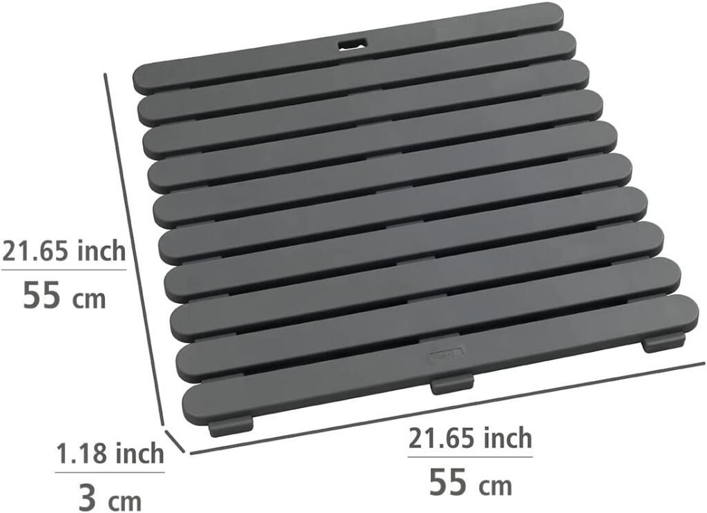 Gri, Kaymaz Duş ve Banyo Paspası 55x55 cm – Sauna ve Havuz Kullanımına Uygun