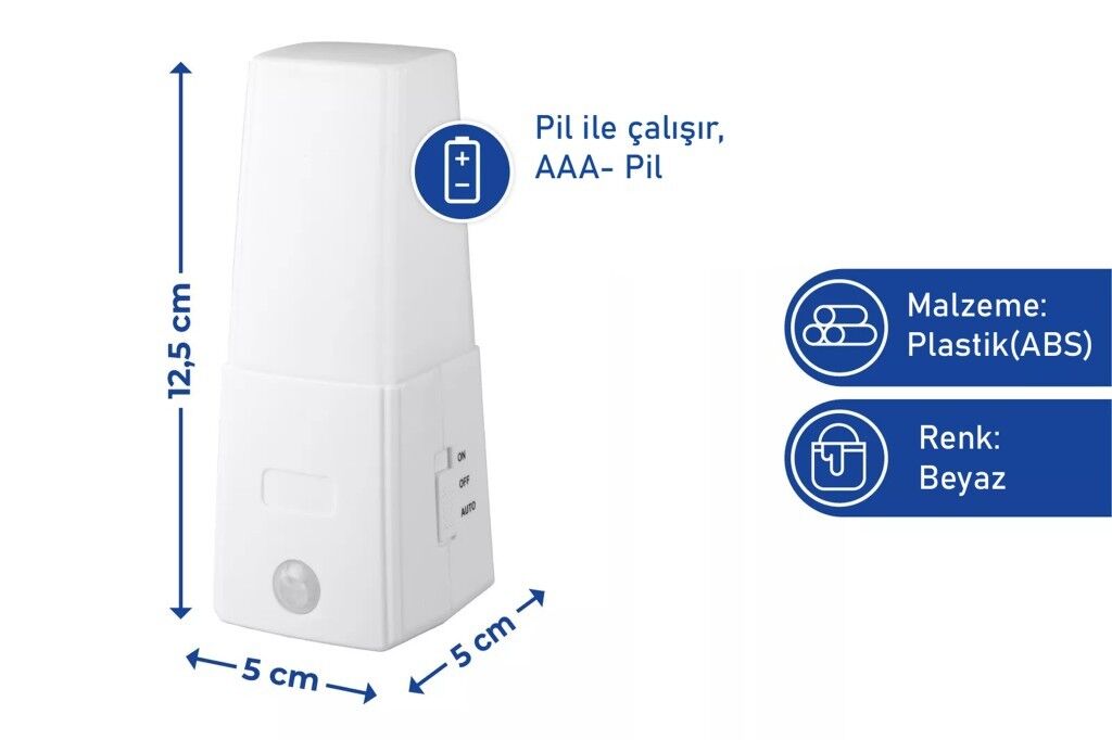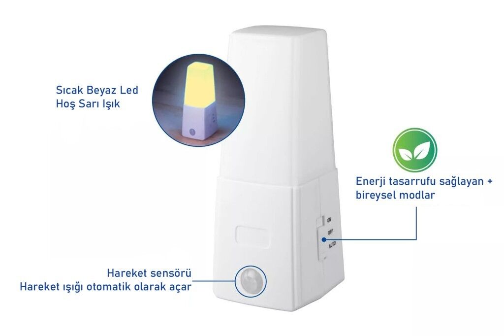 Otomatik hareket algılayan LED gece lambası, sensörü sayesinde hareketi tespit ettiği anda yanar. Karanlıkta yolunuzu kolayca bulmanızı sağlar, gece düşme riskinizi azaltır.