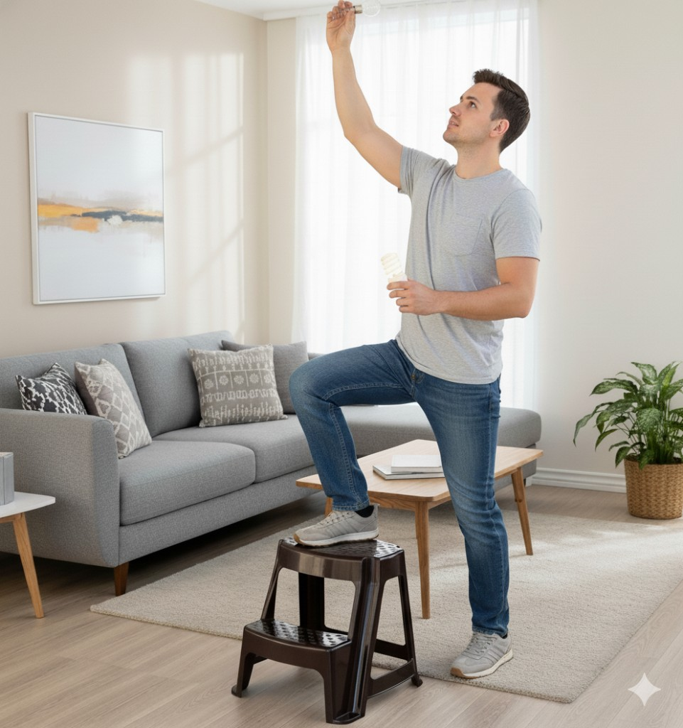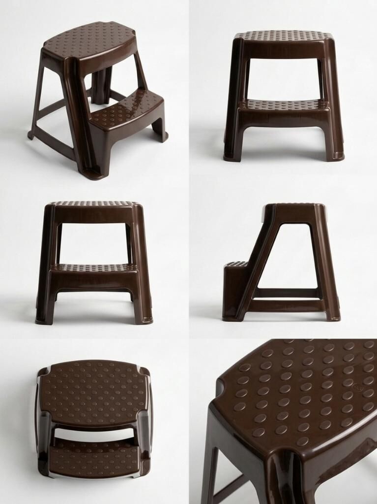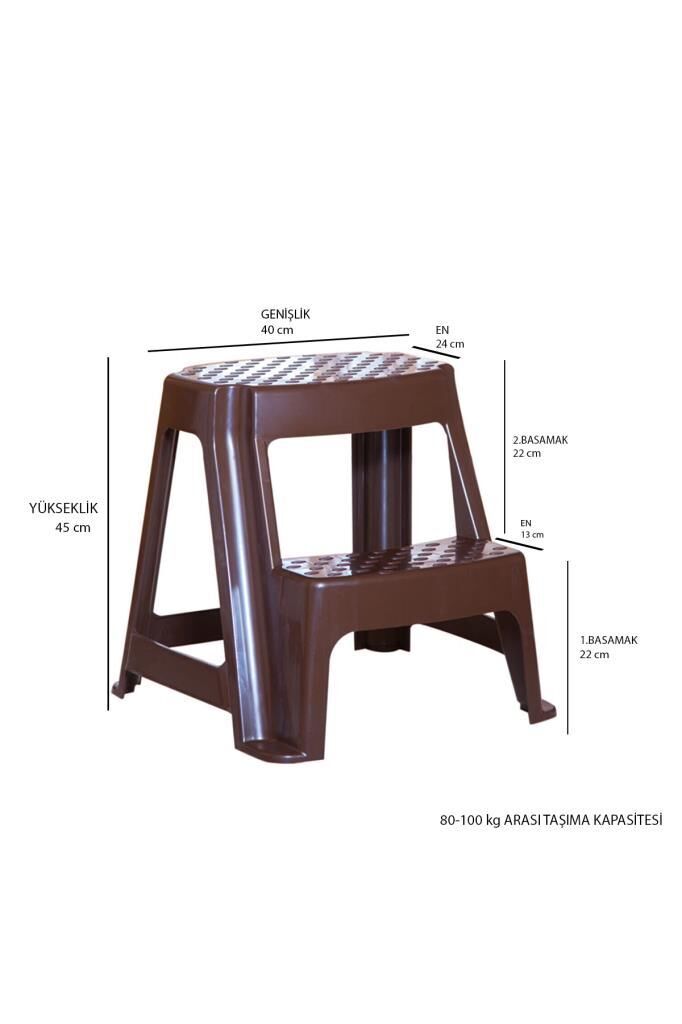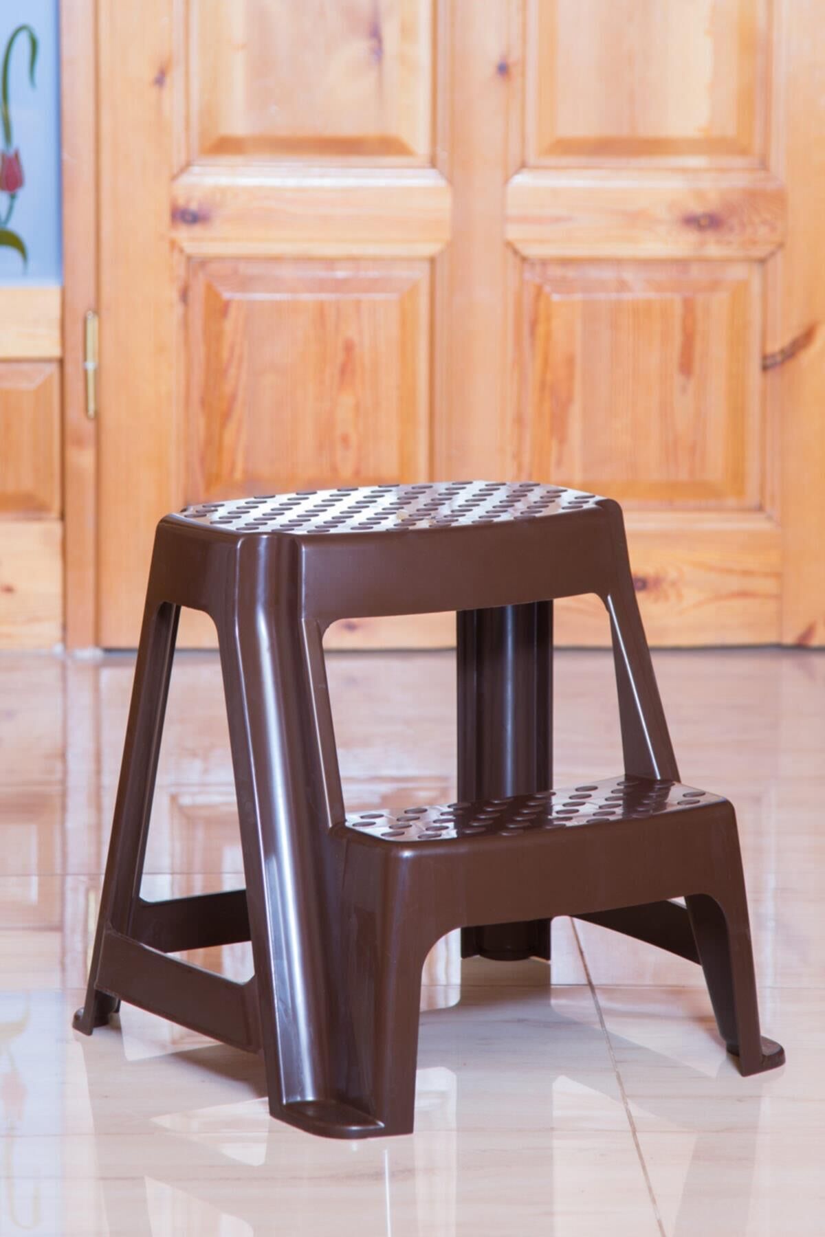 Kahverengi, Plastik Basamaklı Tabure – Kaymaz Yüzeyli, Dayanıklı ve Taşınabilir