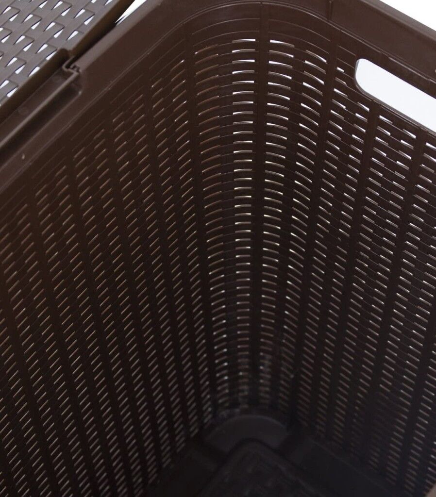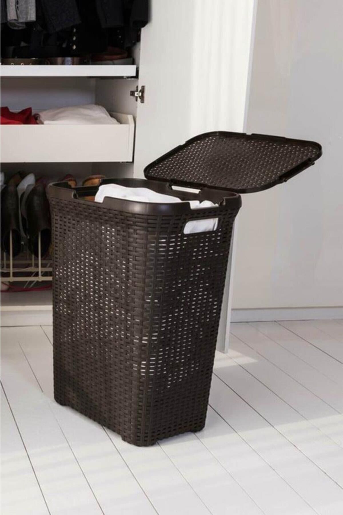 Kahverengi, Plastik Hasır Desenli Kapaklı Çamaşır Sepeti – 55x43x33cm
