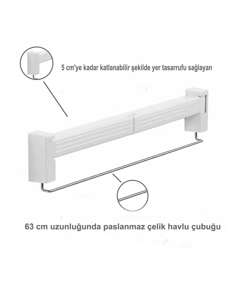 - Pratik 63 cm uzunluğunda paslanmaz çelik havlu askısıyla