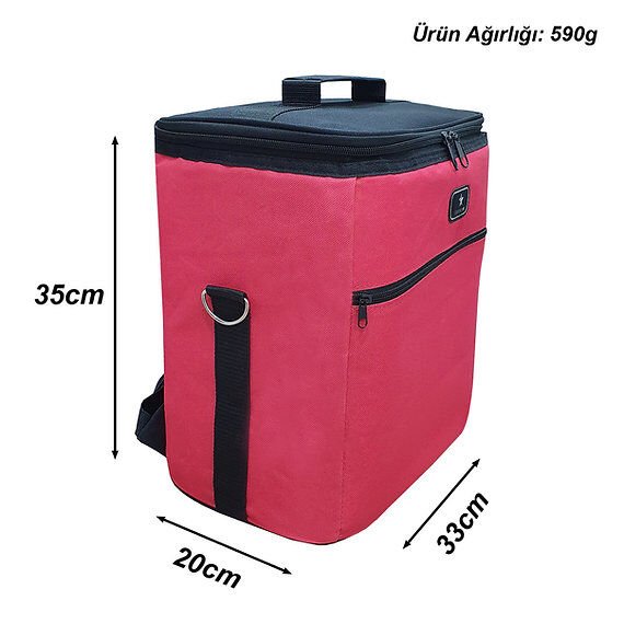 Kırmızı, 25 Litre Termal Soğuk Tutucu Çanta – İzolasyonlu Termo Piknik / Kamp / Plaj