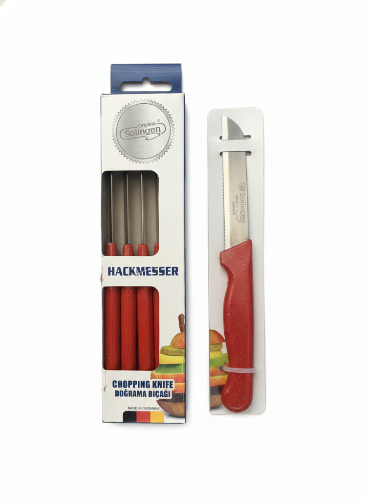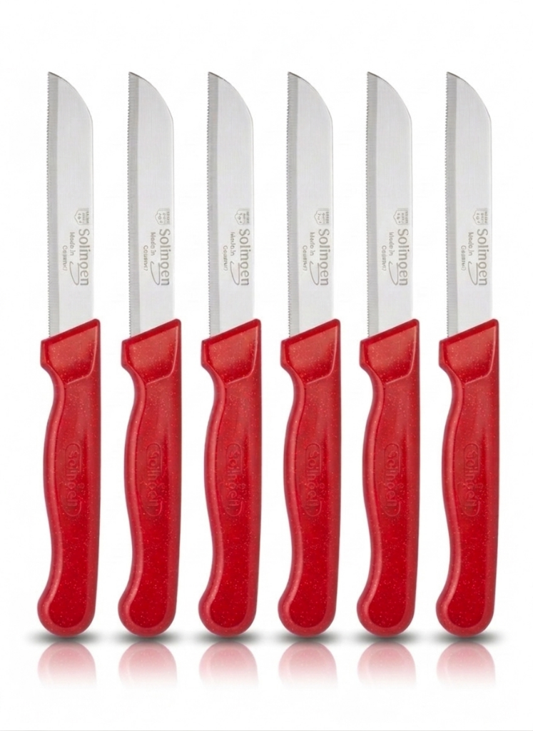 Kırmızı, 6’lı Paslanmaz Çelik Meyve Bıçağı Seti – Tırtıklı Keskin Ağız