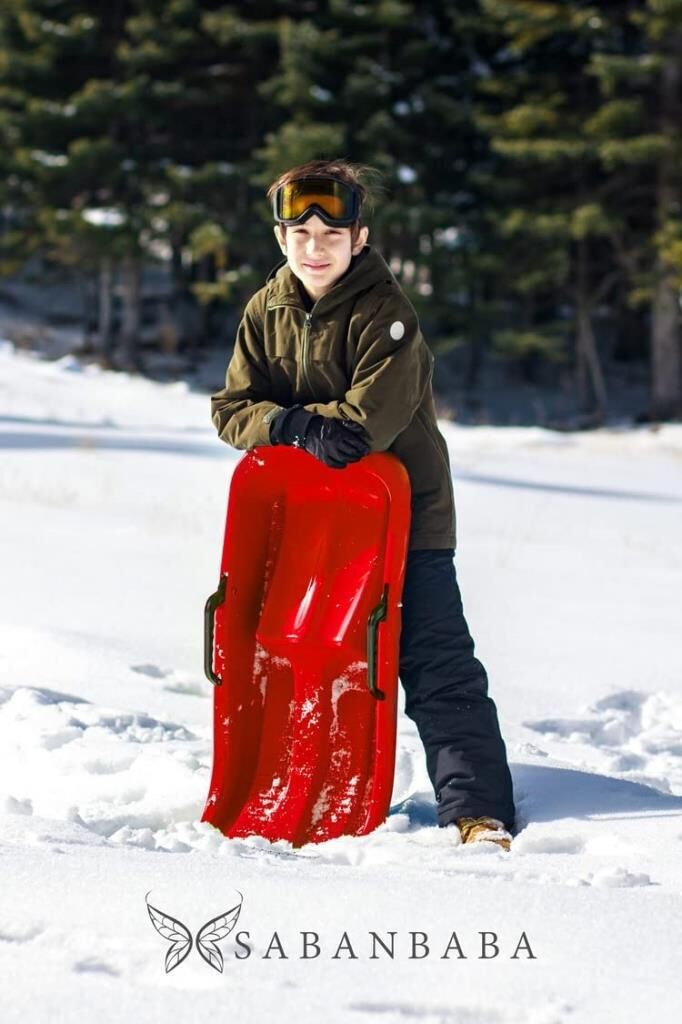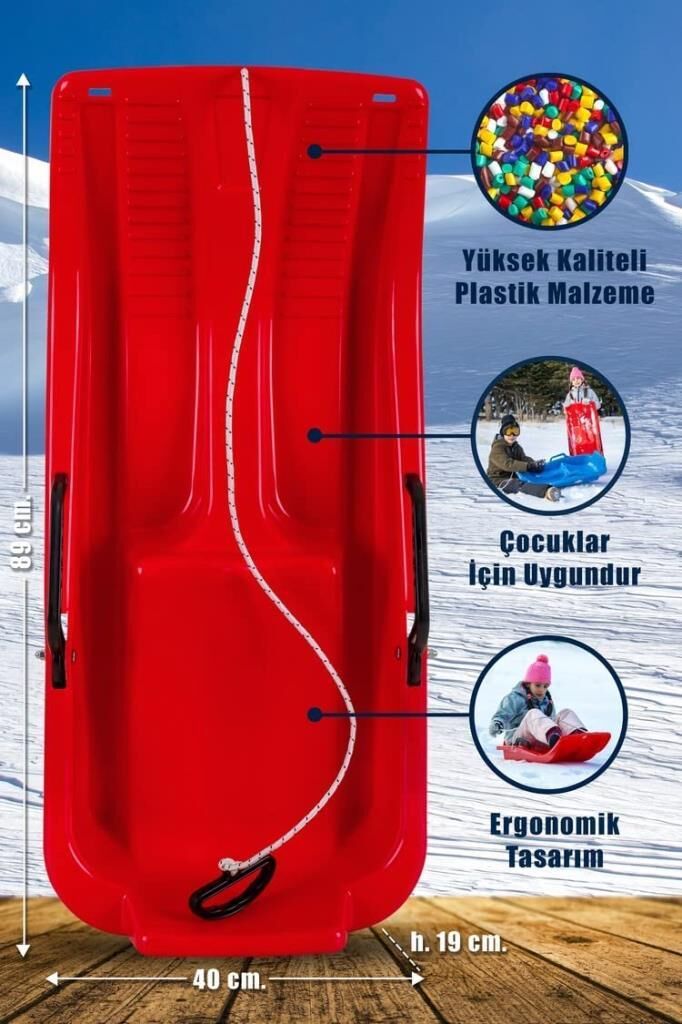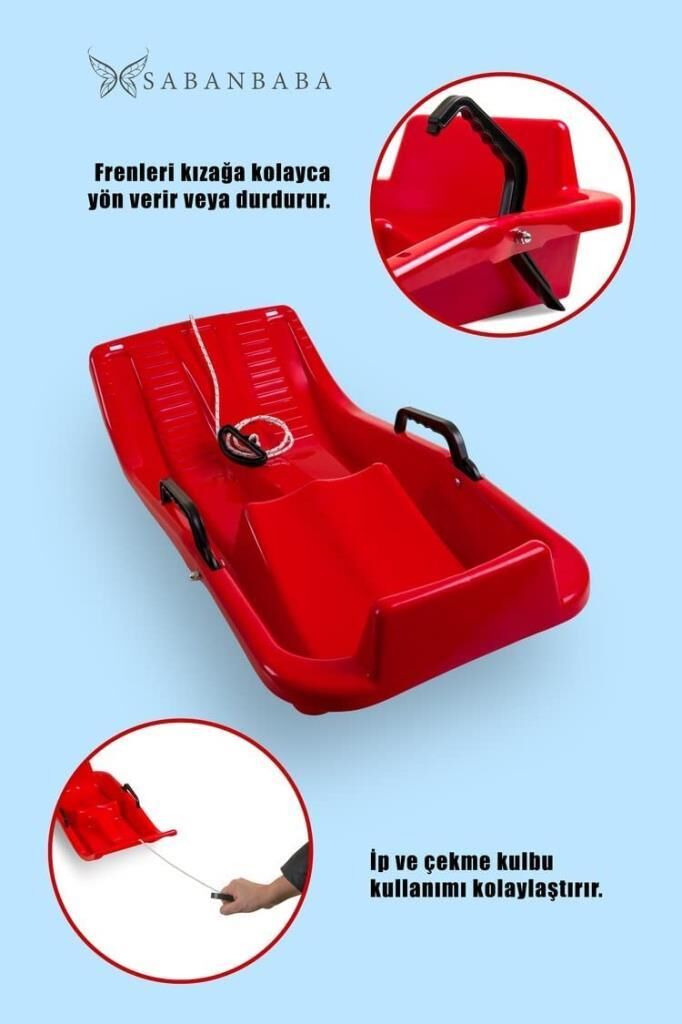 Kırmızı, Frenli Kar Kızağı - Plastik Kızak